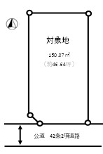 | 土地面積 | 150.87㎡ 古家有/昭和49年11月築木造106.82㎡ |